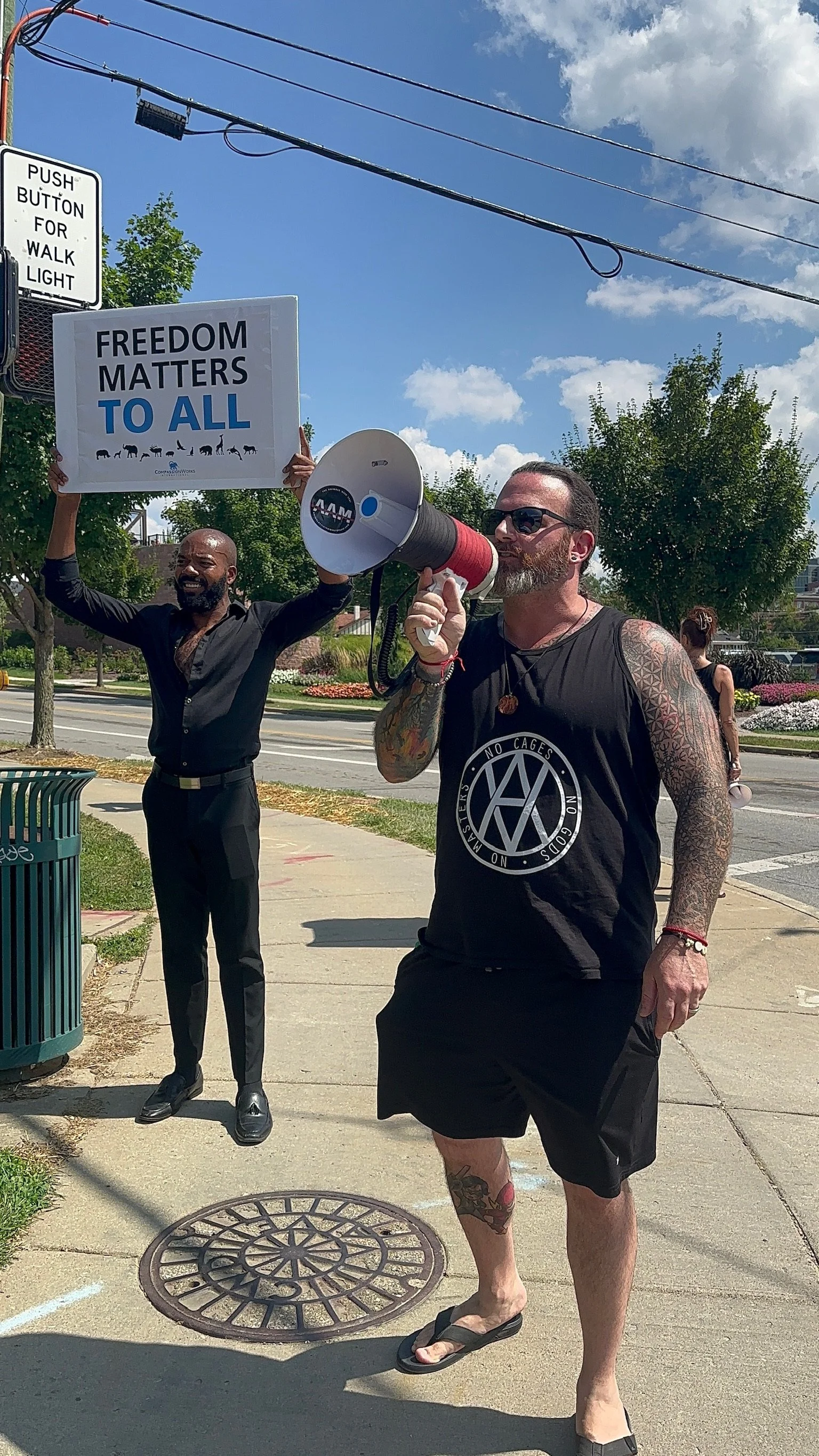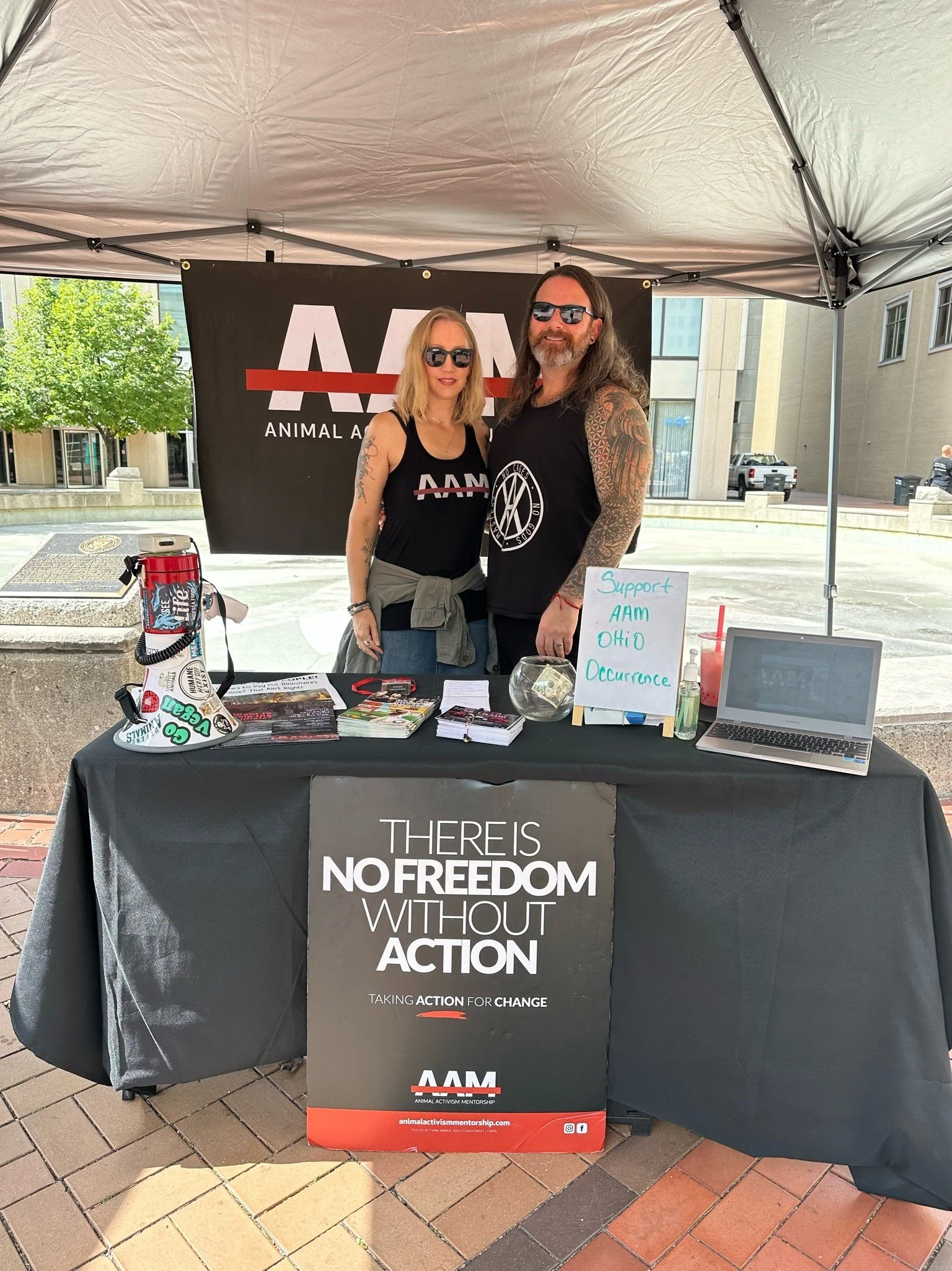 After about a year of being vegan, I became an animal rights activist. My wife and I went through the Animal Activism Collective (AAC) mentee program, and since then activism has become our purpose in life. I have since become a mentor for AAC. In 2023 my wife and I as well as a few others created a local animal rights activist group called Southwestern Ohio Animal Rights Network (SWOARN). I am involved with activism for various organizations such as Anonymous for the Voiceless (I’m a chapter organizer), We The Free (I’m a chapter organizer here as well), Plant Based Treaty, Horseracing Wrongs, and Project Animal Freedom. I’m also one of the organizers/planners for Ohio Occurrence taking place in Columbus in August 2024.