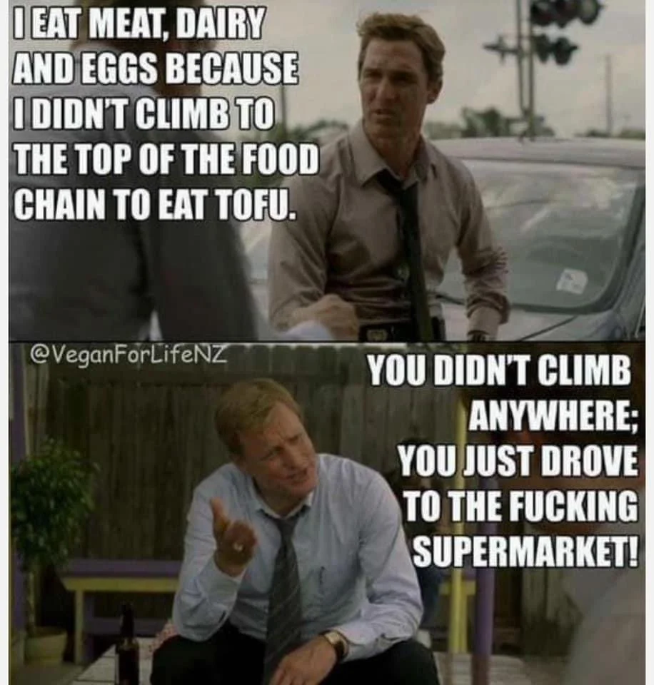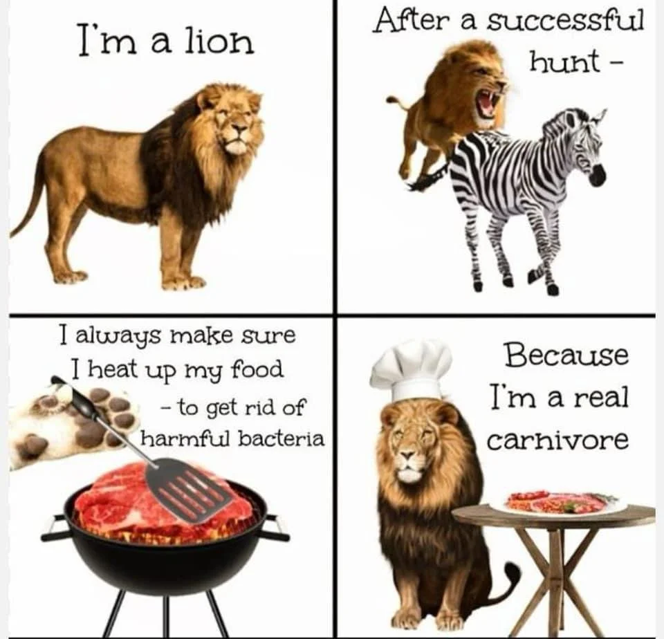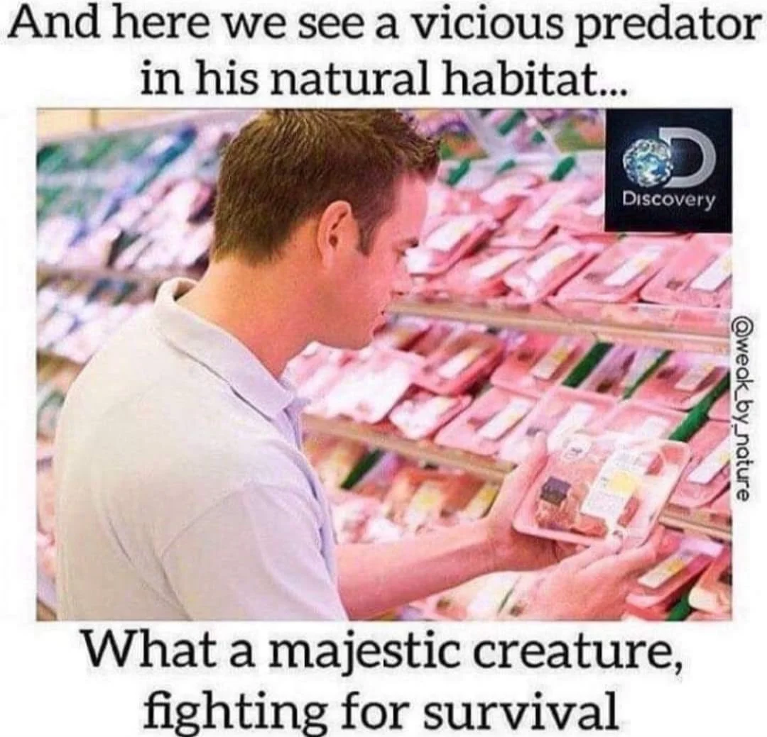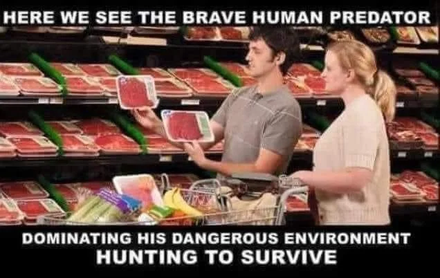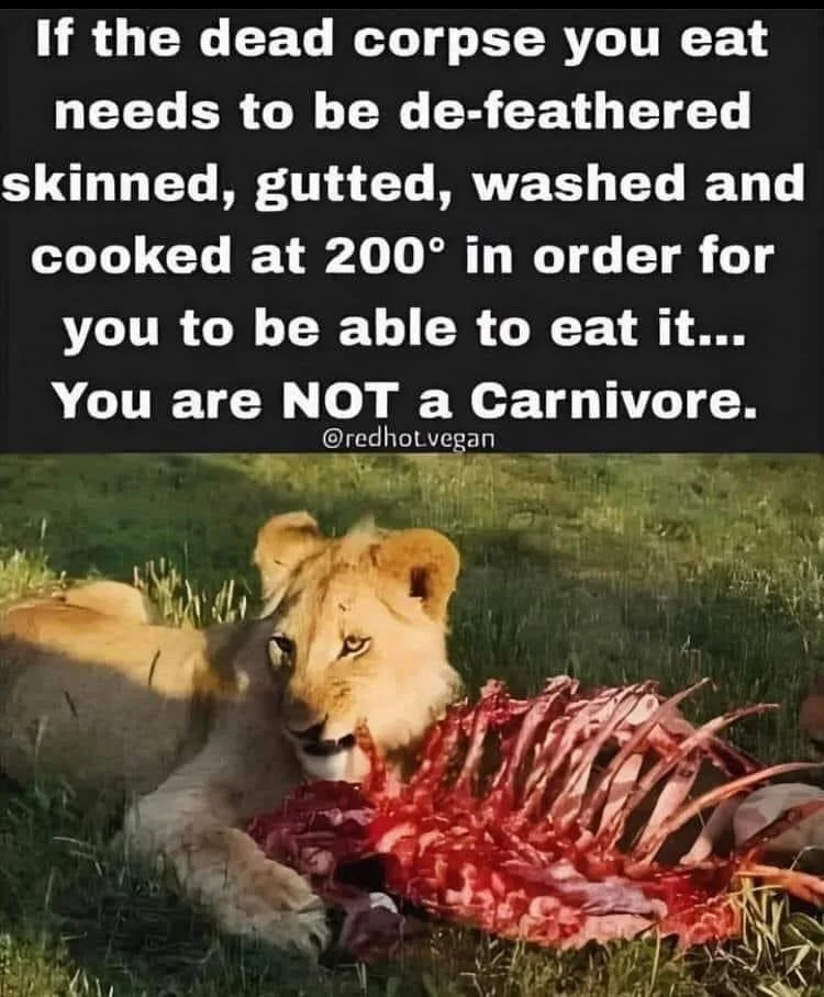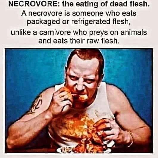 As an aside, an actual carnivore or omnivore will immediately eat the animal after killing them, and will eat them raw. Humans must cook the animals before eating or they’ll get sick and possibly die. And for those that don’t hunt, they buy their meat from grocery stores where the decaying flesh is pumped full of chemicals to stay “fresh.” Eating rotting, decaying flesh that you had to cook doesn’t make you a carnivore or an omnivore, it makes you a necrovore.