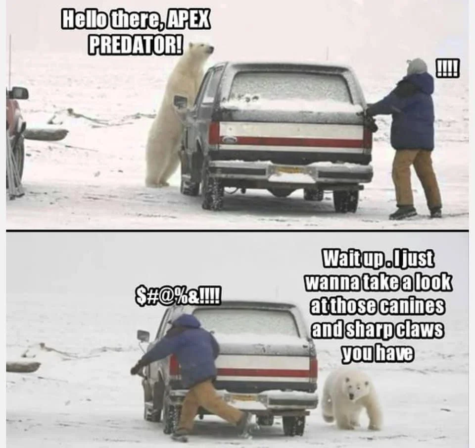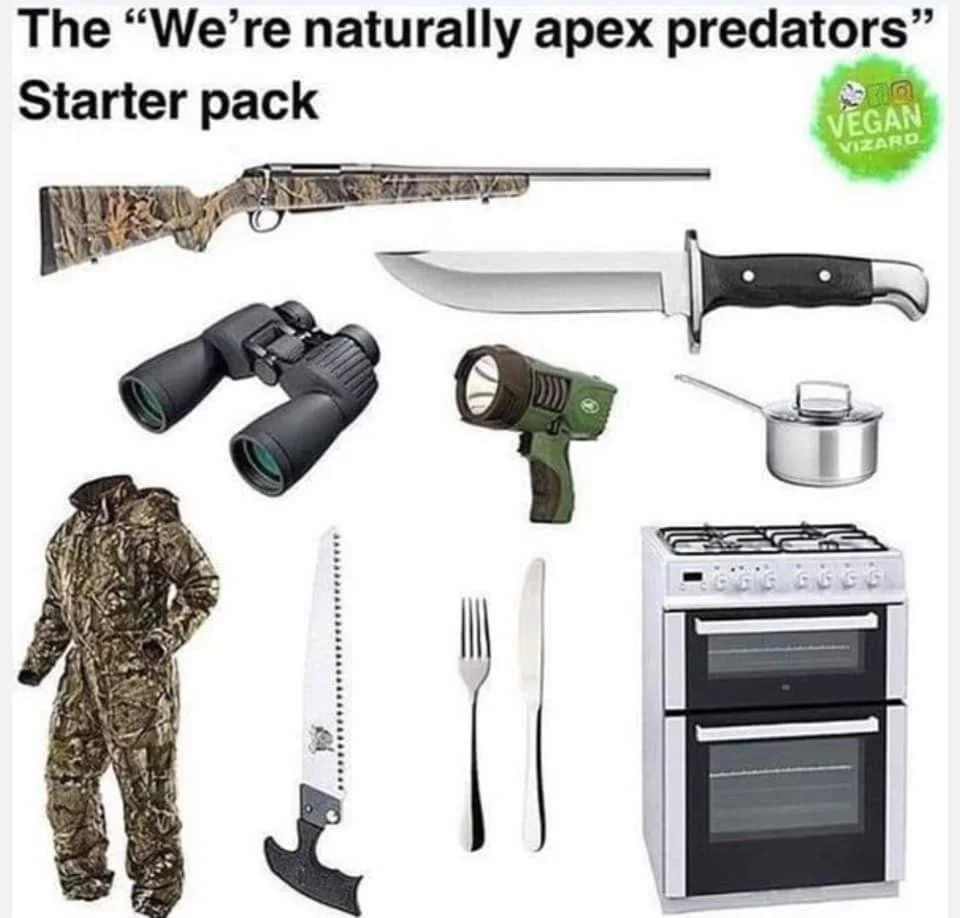 And then there’s my favorite: “humans are apex predators.” Let’s look at the definition of an apex predator: