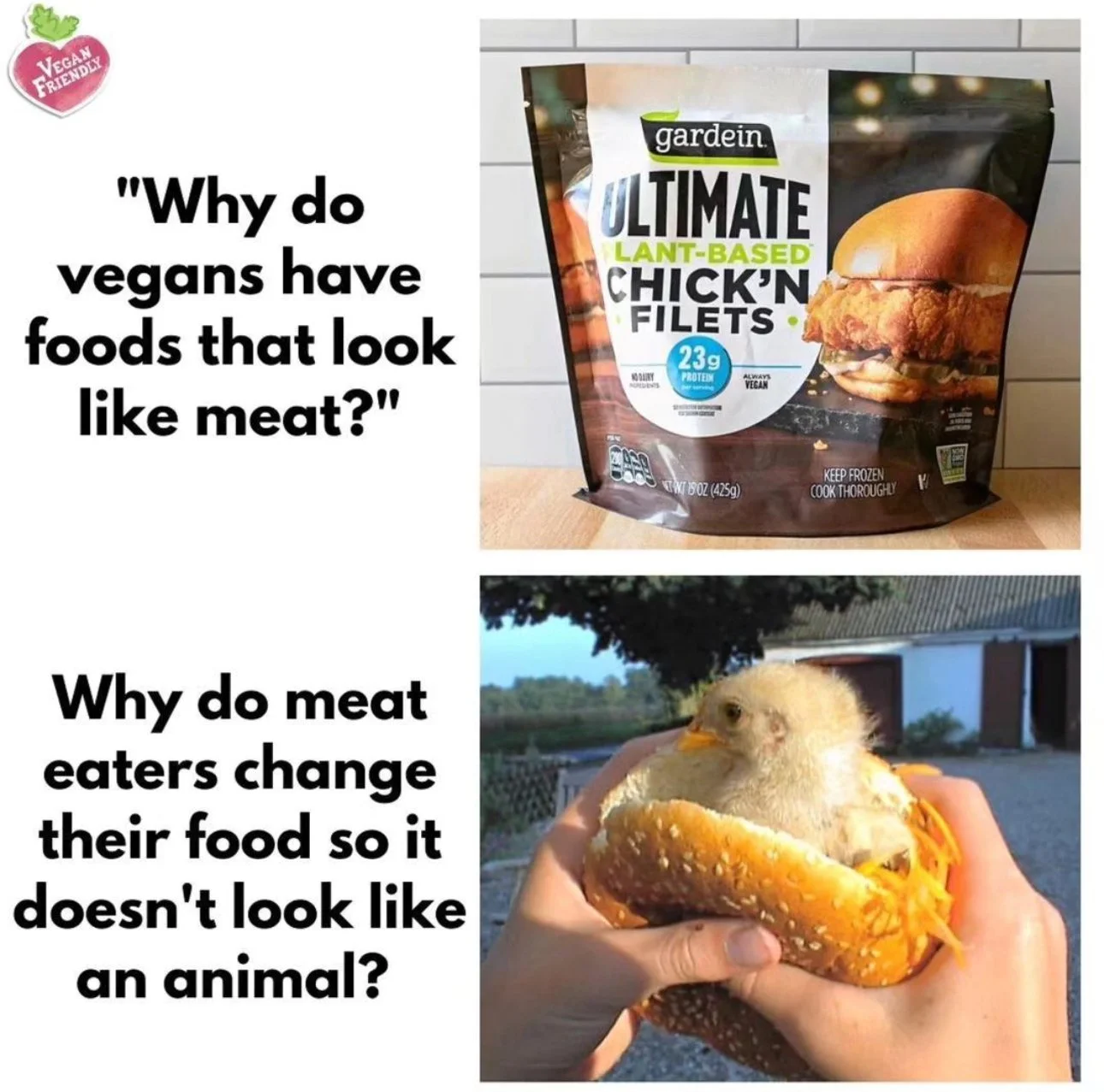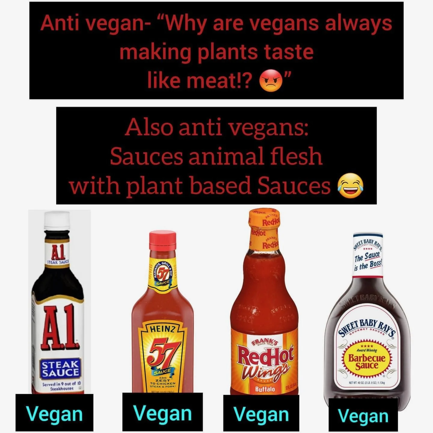 The real question is, why do non-vegans make their food taste like plants? You don’t often find someone eating plain unseasoned meat by itself. Take a hamburger, for example. A hamburger is seasoned with plants (garlic powder, onion powder, pepper, etc.), topped with plants (tomato, lettuce, onion, relish, etc.) with plant-based condiments (ketchup, mustard, etc.), and put on a bun that is most likely vegan. It’s actually non-vegans that go to extreme lengths to make their meat taste like a variety of delicious plants.