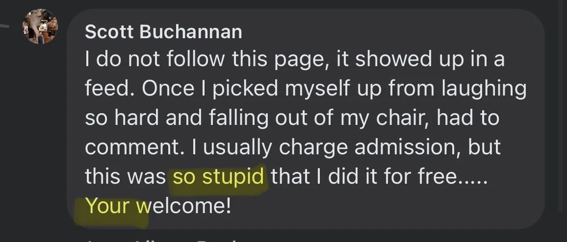 I’ve created a “Hall of Shame” highlighting some of my favorites. They rank anywhere from the typical lack of third-grade spelling/grammar knowledge of your/you’re and their/there/they’re, to what I can only describe as a meth-induced stroke.