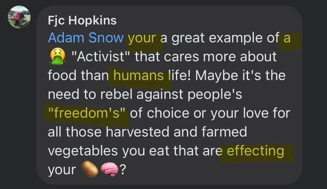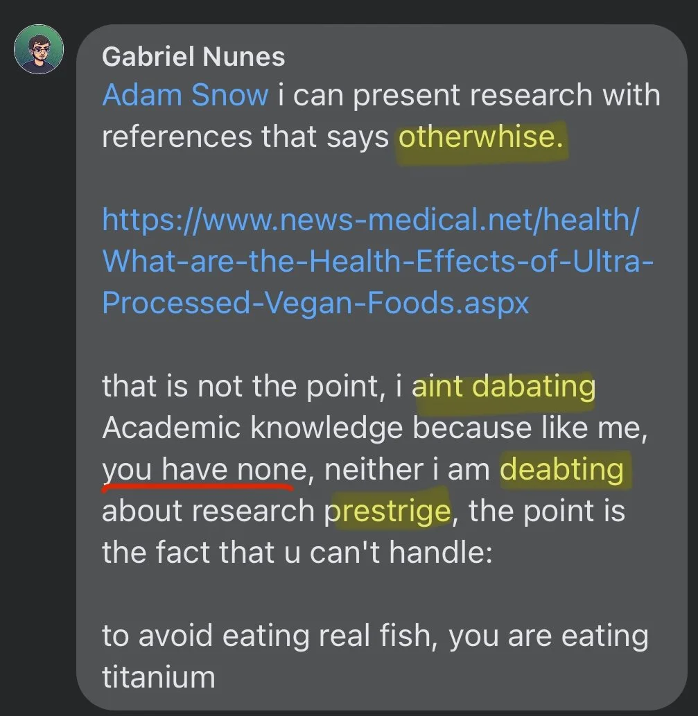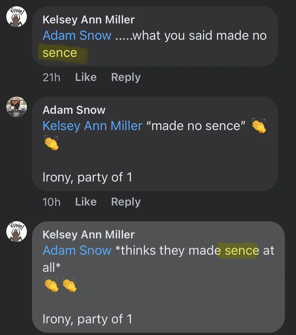 I’m not one to insult someone’s intelligence, and I’m especially not one to make fun of typos, spelling, and grammar mistakes, as I’m a pretty awful typist. But there’s this amazing irony when someone makes a comment insulting someone’s intelligence, and while doing so makes the most egregious spelling and grammar errors imaginable.